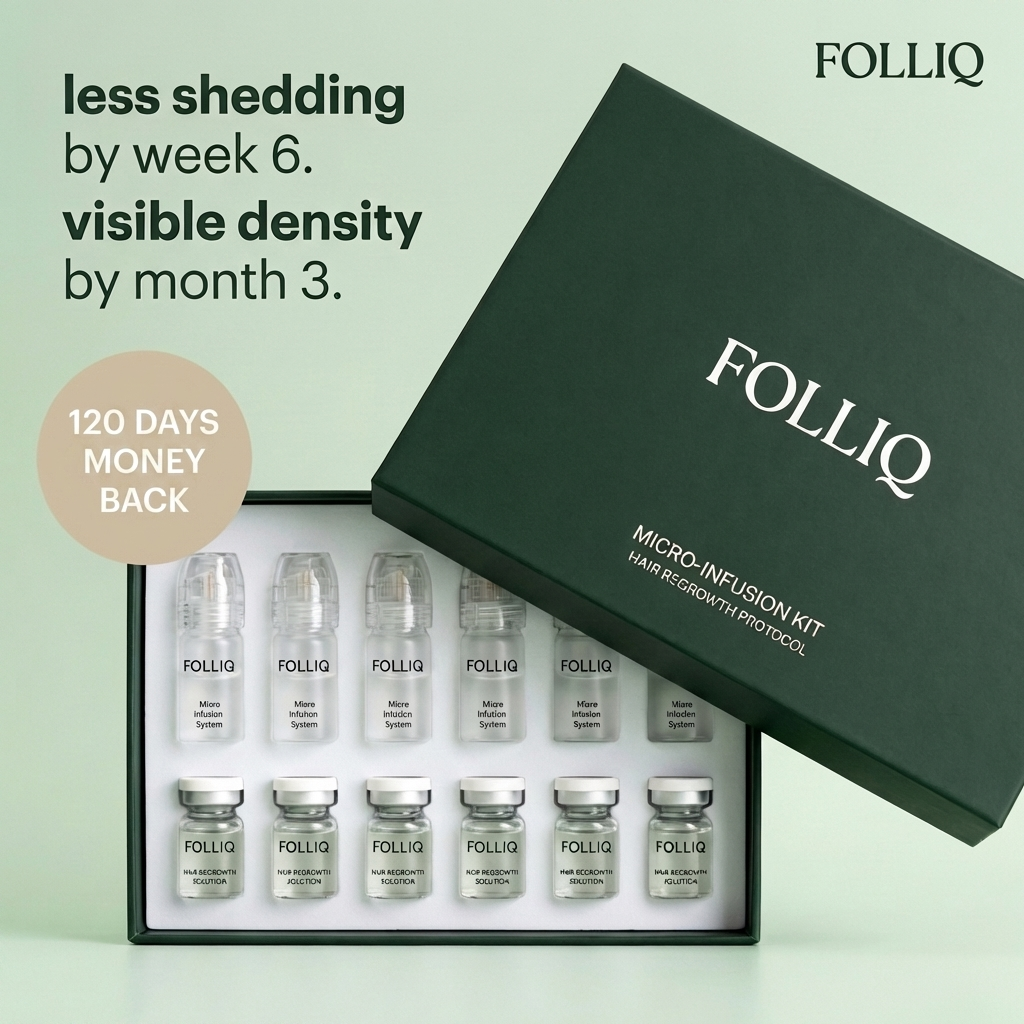 Most topicals sit on the surface. FOLLIQ uses a precision micro-infusion system to open micro-channels in the scalp — delivering active ingredients exactly where hair growth begins.